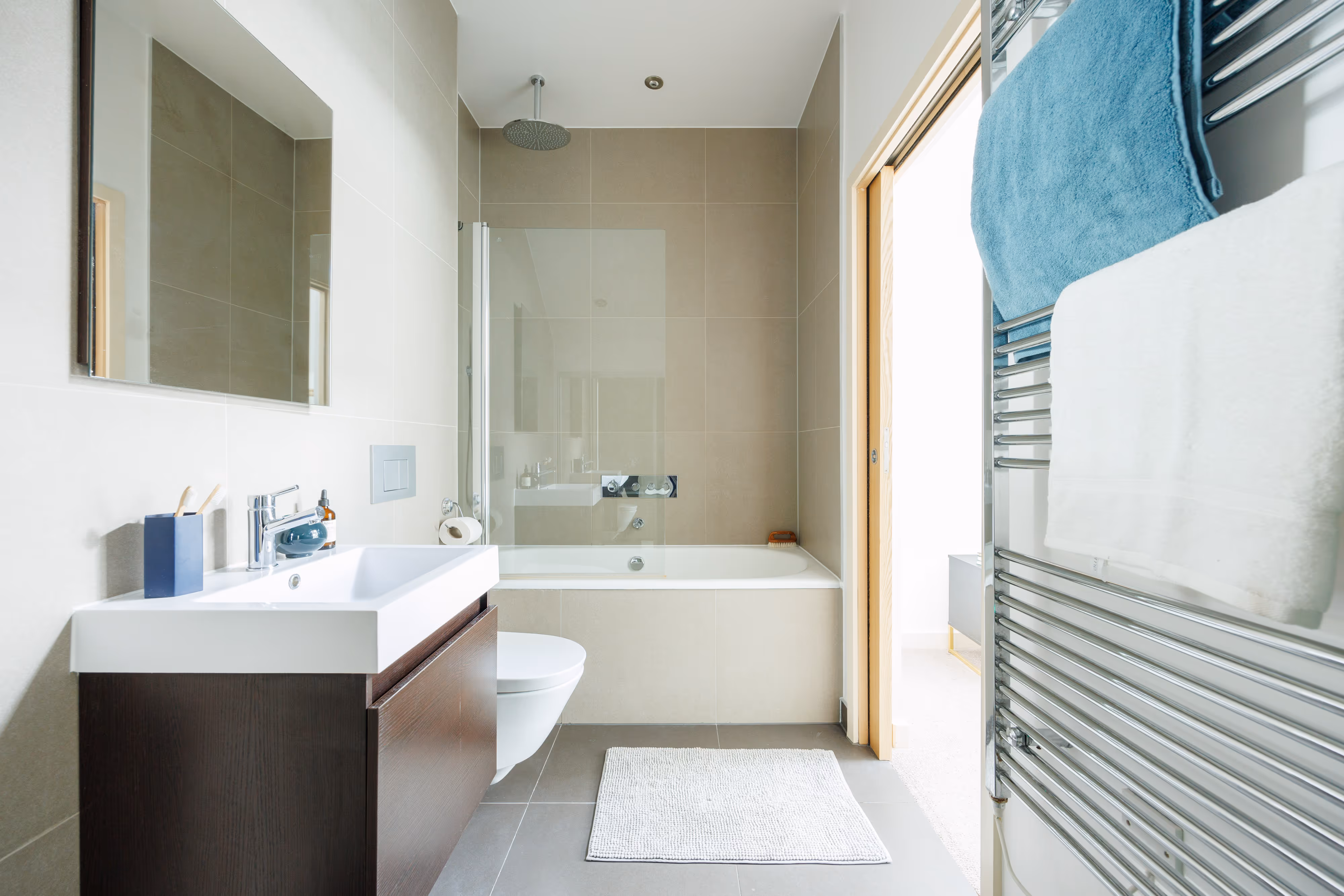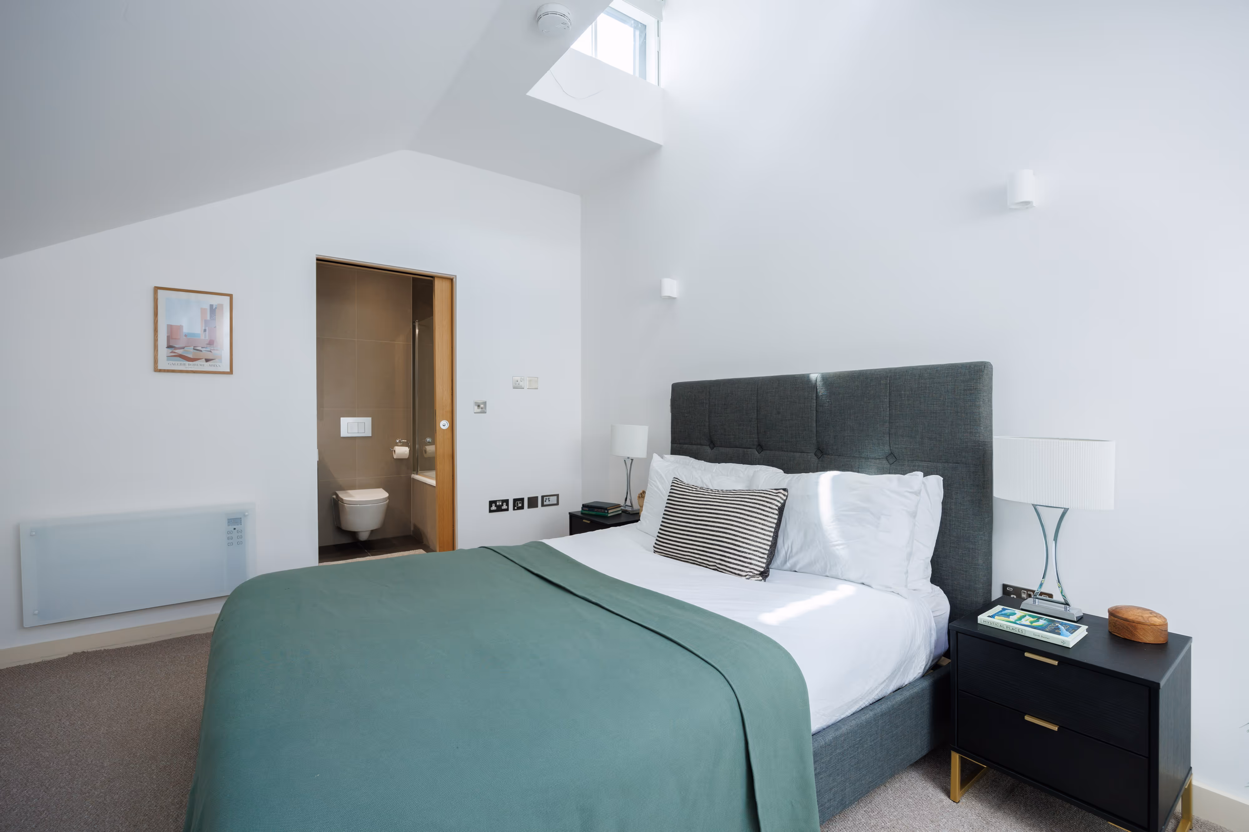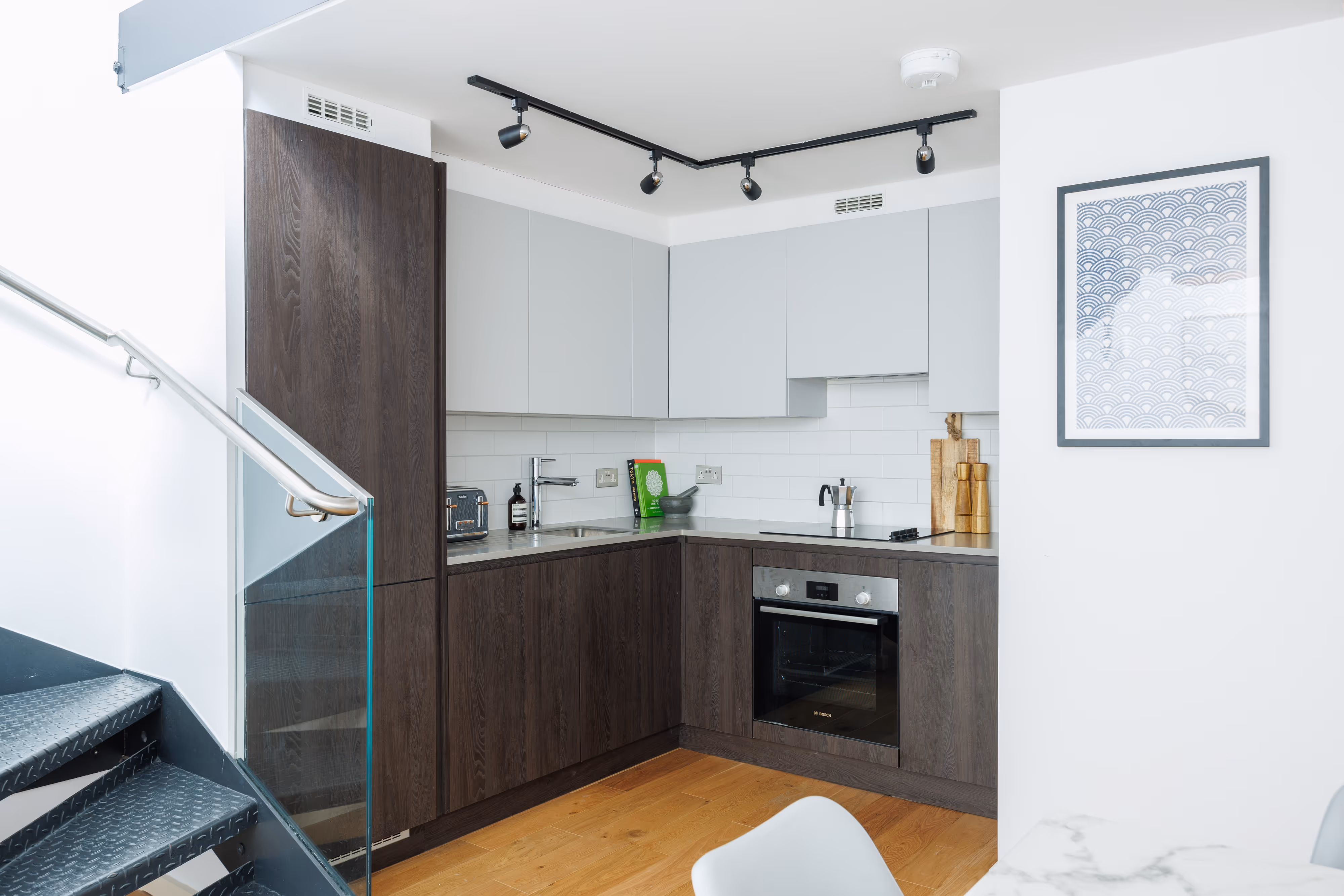 This fully-furnished apartment boasts a modern designed open-plan living / kitchen area with fully fitted appliances such as an integrated oven, fridge freezer, hob, and dishwasher. The apartment has modern wood flooring throughout, two generously sized bedrooms, additional storage and a contemporary fitted bathroom suite. One of the bedrooms has an en-suite. There is also secure internal bike storage, only accessible to residents.